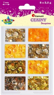 Cekiny okrągłe 7mm zestaw 8 kolorów po 2,5g tonacja złota 319386 TITANUM