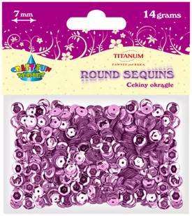 Różowe metaliczne cekiny o średnicy 7mm w klasycznym stylu z otworkiem po środku. Cekiny "łamane", czyli każdy cekin tworzy coś w rodzaju kwiatka z wduszonym środkiem i 6 płatkami. W opakowaniu znajduje się 14g cekin, którymi można wspaniale udekorować wyroby krawieckie czy ozdoby styropianowe.
