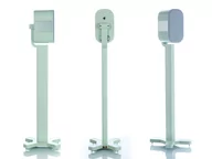 Smukłe stojaki z wytłaczanego aluminium z podstawami z hartowanego szkła elegancko eksponują głośniki, ukrywając przewody głośnikowe.