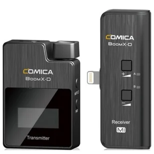 Zestaw mikrofonowy Comica BoomX-D MI1 Zaprojektowany dla dziennikarzy, kamerzystów i vlogerów, Comica BoomX-D MI1 to ultrakompaktowy, prawdziwie bezprzewodowy system mikrofonów cyfrowych z jednym mikrofonem i dwukanałowym odbiornikiem, który może być również używany do odbierania drugiego mikrofonu (dostępny osobno). Oferuje kompletne rozwiązanie do nagrywania dialogów, wywiadów i przemówień jednej osoby - bezpośrednio do smartfona lub tabletu z systemem iOS. Ultralekki BoomX-D MI1 składa się z ultrakompaktowego przypinanego nadajnika z własnym wbudowanym mikrofonem wielokierunkowym i oddzielnym mikrofonem lavalier. Jest również wyposażony w niewielki odbiornik, który montuje się i podłącza bezpośrednio do portu Lightning w telefonie. Aby upewnić się, że przechwytujesz czysty sygnał, możesz monitorować swój mikrofon przez wyjście słuchawkowe 3,5 mm odbiornika podczas nagrywania.