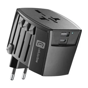 Adapter podróżny marki CELLULARLINE to wszechstronny adapter podróżny, który umożliwia bezpieczne ładowanie urządzeń elektronicznych w ponad 150 krajach na całym świecie. Dzięki wbudowanym portom USB-A (18W) i USB-C (20W), pozwala na szybkie i efektywne ładowanie urządzeń o mocy do 20W. Adapter charakteryzuje się bipolarnym przyłączeniem bez uziemienia, co zapewnia jego uniwersalność i wygodę użytkowania.