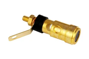 Gniazdo bananowe montażowe ze sprężynką złote-czarne / 003232