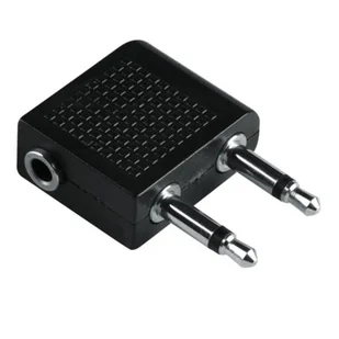 Adapter samolotowy do podłączenia słuchawek stereo w samolocie. Wejścia: gniazdo Jack 3,5-mm/2x wtyk Jack 3,5-mm.