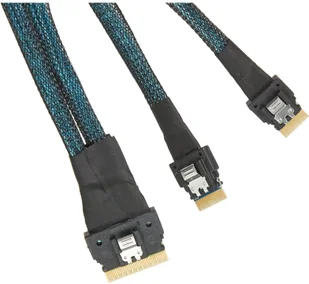 Kabel do systemu z przednią kieszenią na napęd 2U M50CYP2UR x16, umożliwiający pamięć masową PCIe NVMe. Elementy w zestawie: 1 kabel rozdzielacza 275/255 mm, łączy płytę serwerową CPU0 x4 SlimSAS C i D (VT) z HSBP (po lewej) x 8 SlimSAS SSD6-7 (VT) 1 kabel rozdzielacza 305/325 mm, łączy płytę serwerową CPU0 x4 SlimSAS A i B (VT) do HSBP (po lewej) x8 SlimSAS SSD4-5 (VT) 1 x kabel rozdzielacza 360/340 mm, łączy płytę serwerową CPU1 x4 SlimSAS A i B (VT) do HSBP (po prawej) x8 SlimSAS SSD14 -15 (VT) Kabel rozdzielający 1 x 240/260 mm, łączy płytę serwerową CPU1 x4 SlimSAS A i B (VT) z HSBP (po prawej) x8 SlimSAS SSD12-13 (VT), kabel Intel CYPCBLSL216KIT Serial Dołączony SCSI (SAS).