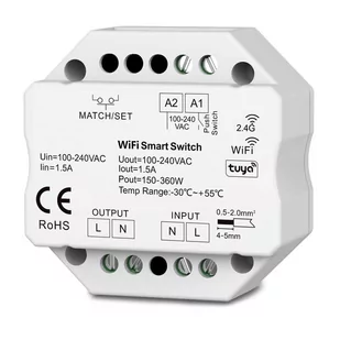 Przekaźnik dopuszkowy współpracuje z przełącznikami monostabilnymi bistabilnymi klasycznymi przełącznikami. Możesz sterować urządzeniami elektrycznymi z dowolnej lokalizacji na świecie ze swojego smartfona. Sterowanie może odbywać się również za pomocą pilotów RF z serii SD oraz poprzez obsługę głosową za pomocą Google Home i Amazon Alexa. Obsługa odbywa się za pomocą aplikacji TUYA lub Smart Life. Specyfikacja:
