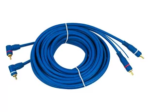 Przyłącze 2xRCA, zakończone z jednej strony wtykami RCA prostymi i z drugiej wtykami RCA kątowymi, wrazz przewodem sterującym do samochodowych instalacji audio.