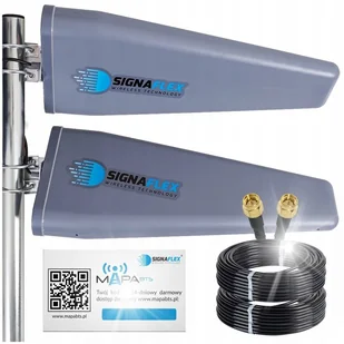 szary Temperatura pracy: od -40 do 65°C Skład zestawu: Antena kierunkowa 2x23 dBi 10 m przewodu SRF240 zakończony wtykami FMEż Do wyboru konektor: SMA. Uchwyty montażowe do anteny