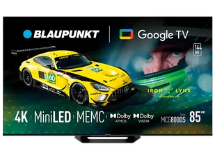 Telewizor MiniLED Blaupunkt 85Mcg8000S 85" 4K 144Hz Google TV Dolby Vision Czarny Telewizor MiniLED Blaupunkt 85Mcg8000S to model z serii Mcg8000S, stworzony dla osób oczekujących kinowych wrażeń w domowym zaciszu. Dzięki technologii Mini Led, częstotliwości odświeżania 144 Hz oraz wsparciu dla Dolby Vision i Dolby Atmos, oferuje obraz i dźwięk na najwyższym poziomie.