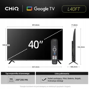 CHiQ L40FT TV 40", FHD, smart, Google TV, dbx-tv, Dolby Audio, Frameless
