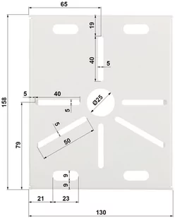 Blacha montażowa BM-130X160 jest przeznaczona do montażu kamer kulistych oraz tubowych na masztachProdukt pozwala na montaż kamer i uchwytów o średnicy podstawy montażowej nieprzekraczającej Ø120mm