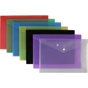Wykonana z kolorowej transparentnej folii PP; zamykana na wygodny nap zabezpieczający dokumenty przed wypadaniem; idealna do segregowania i przechowywania dokumentów, notatek, itp.;