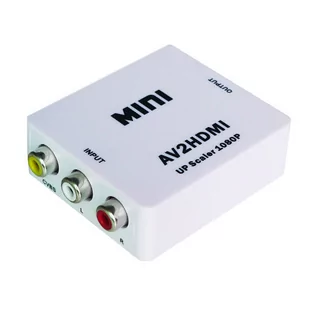 Konwerter sygnału 3 x Cinch RCA do HDMI HD Konwerter sygnału RCA (Chinch) do HDMI. Konwertuje sygnał Video + 2xAudio do sygnału HDMI. Umożliwia przetworzenie sygnału analogowego composite ( L+R stereo i Video ) do sygnału cyfrowego HDMI w jakości HD, 1080p Urządzenie posiada UP Scaler 1080, ożywia obraz, wyostrza i dostosowuje do realistycznego obrazu HD. Za pomocą wbudowanego przełącznika można łatwo przełączać pomiędzy wyjściami PAL (50 Hz) jak również NTSC (60 Hz). Nie ma potrzeby instalowania sterowników ( Plug and Play ) Dane techniczne: