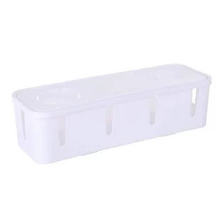 Pudełko na kable to sposób, dzięki któremu pozbędziesz się problemu plączących się kabli i zasilaczy. Otwory umiejscowione na mniejszych ściankach pudełka pojemnika pozwalają na łatwe i sensowne rozmieszczenie kabli. Zamykane wieko zapewnia ograniczony dostęp dla dzieci, dodatkowo zapewni osłonę przed kurzem. Delikatny design sprawia, że pudełko nie zwraca na siebie uwagi, nawet jeśli jest umiejscowione w widocznym miejscu.