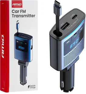 Transmiter samochodowy fm 1×usb-a 1×usb-c 12v 24v amio-04656