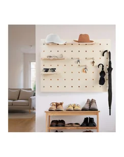 Panel ścienny Maclean MC-130 WD z jasnego drewna 40x60 cm z 3 półkami i 5 haczykami, nośność 20 kg, solidny montaż ścienny do kuchni, biura, warsztatu, dekoracyjna i funkcjonalna przestrzeń (60x80 cm)
