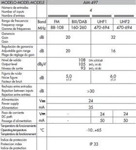 Zestaw BO-497 sumuje sygnały typu: 2xUHF+VHF+FM. Całość jest podawana dalej na jednym przewodzie koncentrycznym 75 Ohm.