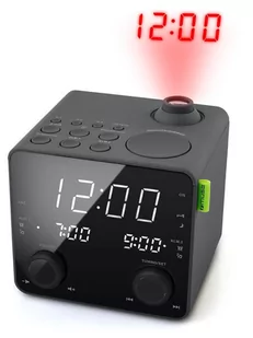 Radiobudzik z projekcją MUSE M-189 P Czarny ze ściemnianym wyświetlaczem LED. Zasilany jest z sieci oraz posiada funkcję podtrzymywania bateryjnego w razie awarii sieci.