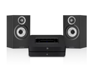 Zestaw składający się z bezprzewodowego, strumieniowego wzmacniacza multiroom Bluesound POWERNODE i kolumn Bowers & Wilkins 607 S3