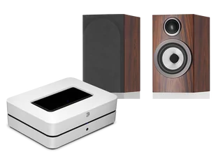 Zestaw składający się z bezprzewodowego, strumieniowego wzmacniacza multiroom Bluesound POWERNODE i kolumn Bowers & Wilkins 707 S3