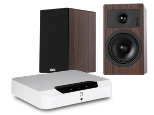Zestaw składający się z odtwarzacza sieciowego ze wzmacniaczem Bluesound POWERNODE EDGE i kolumn Indiana Line Tesi 2