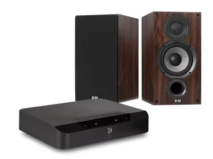 Zestaw składający się z odtwarzacza sieciowego ze wzmacniaczem Bluesound POWERNODE EDGE i kolumn Elac Debut 2.0 B5.2
