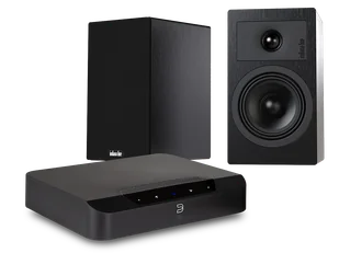Zestaw składający się z odtwarzacza sieciowego ze wzmacniaczem Bluesound POWERNODE EDGE i kolumn Indiana Line Tesi 2