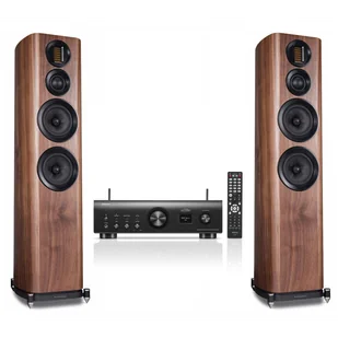 Zestaw składa się z kolumn podłogowych Wharfedale EVO 4.4 w kolorze Orzech oraz wzmacniacza Denon PMA-900HNE w kolorze czarnym. Produkty do których linki zamieszczamy poniżej można odsłuchać w naszym salonie po wcześniejszym umowieniu się.