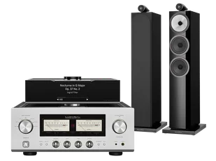 Zestaw składający się ze wzmacniacza Luxman L-507Z, streamera Linn Selekt DSM i głośników Bowers & Wilkins 703 S3