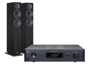 Zestaw stereo składający się ze wzmacniacza zintegrowanego NAD C 389 oraz kolumn Audio Physic Classic 8.