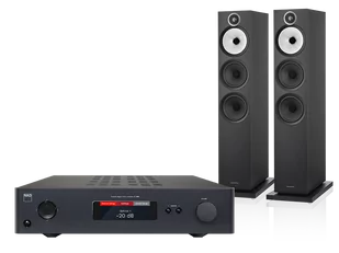 Zestaw składający się z hybrydowego, cyfrowego wzmacniacza zintegrowanego NAD C 368 i głośników Bowers & Wilkins 603 S3