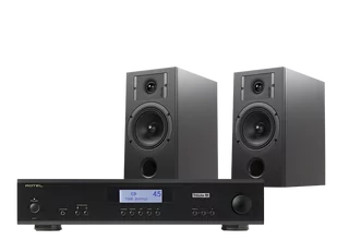 Zestaw składający się ze wzmacniacza zintegrowanego Rotel A11 Tribute i kolumn Indiana Line Diva 3