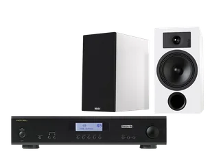 Zestaw stereo składający się ze wzmacniacza zintegrowanego Rotel A11 Tribute oraz kolumn Indiana Line Tesi 3.
