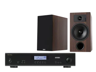 Zestaw stereo składający się ze wzmacniacza zintegrowanego Rotel A11 Tribute oraz kolumn Indiana Line Tesi 3.