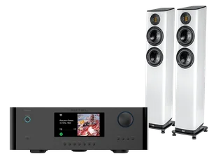 Zestaw stereo składający się z odtwarzacza sieciowego Rotel RAS-5000 oraz głośników ELAC Vela FS407.2.