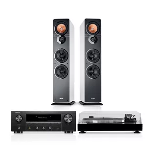 Czysty dźwięk stereo hi-fi: ten gotowy do gry zestaw składający się z kolumn podłogowych ULTIMA 40, amplituneraAV DENON DRA-900H i gramofonu hi-fi DUAL DT 500 sprawi, że doświadczysz intensywnej muzyki z dowolnego źródła. Oszczędność pieniędzy w porównaniu do kupowania ich osobno. Kupując ten zestaw, oszczędzasz w porównaniu z pojedynczym zakupem.