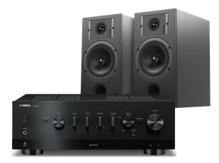 Zestaw stereo składający się z amplitunera stereo Yamaha MusicCast R-N1000A oraz kolumn Indiana Line Diva 3.