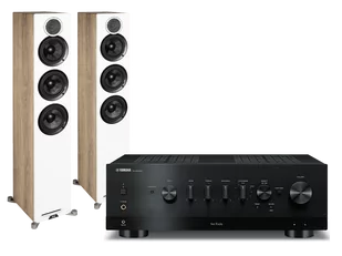 Zestaw stereo składający się z sieciowego amplitunera stereo Yamaha R-N1000A oraz kolumn ELAC Debut Reference F5.