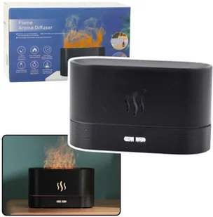 Nawilżacz Powietrza Dyfuzor Aromaterapia Efekt Ognia Kominek Czarny 180ml