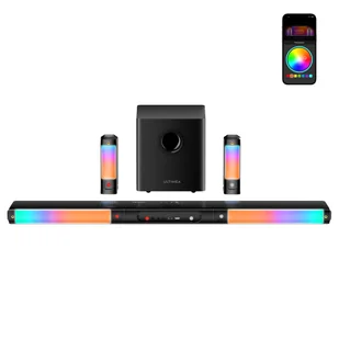 The Apollo S70 Ultra sound bar not only delivers exceptional sound quality but also functions as a 2-in-1 entertainment hub, blending high-quality audio with dynamic RGB lighting. This TV soundbar enhances your listening experience while adding vibrant colors to your space, elevating both the atmosphere and aesthetic of your home. Please note: The soundbar's backlights cannot sync with the TV screen's colors and rhythm.