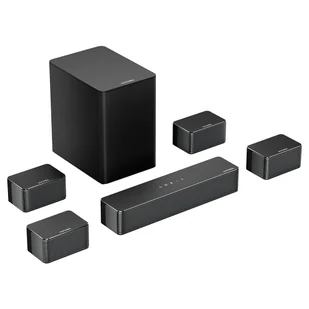 Ciesz się krystalicznie czystym dialogiem z trzech głównych kanałów, 4 przewodowych głośników surround i bezprzewodowego subwoofera 6,5 cala dla szerszego pola dźwiękowego. (Uwaga: Niekompatybilne z Dolby Audio/Atmos.)