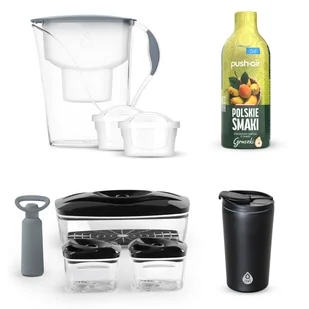 Dafi Zestaw B2U7 Dzbanek Luna + 3x Pojemniki + Syrop + Kubek Termiczny Zestaw promocyjny Dafi zawiera: 1 szt. Dzbanek filtrujący Dafi LUNA stalowy 3,3 l manu...