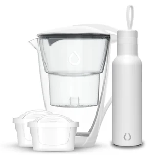Szklany dzbanek filtrujący Dafi CRYSTAL z białą pokrywką + butelka termiczna EASY