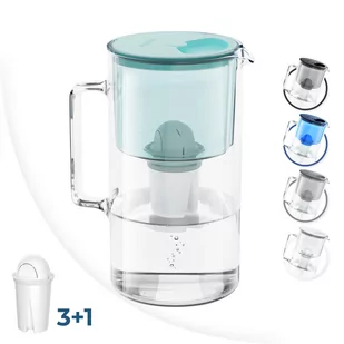DZBANEK SZKLANY WESSPER AQUACLASSIC CRYSTALLINE 2,5L - KOLOR MIĘTOWY Szerokość: 17. 6cm Wysokość: 25cm Objętość: 2500ml W zestawie: Dzbanek filtracyjny / Filtr Wskaźnik zużycia wkładu: