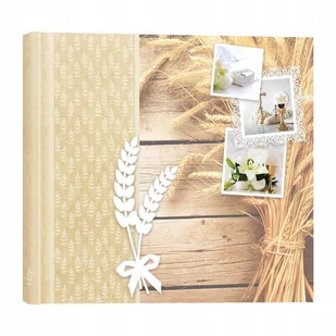 Album na pamiątkę Komunii Świętej, 24 strony Okładka utrzymana w beżu i złocie, z kłosami zbóż oraz małymi zdjęciami nawiązującymi do I Komunii Świętej. Album zawiera 24 białe strony poprzekładanych pergaminem. Wymiary kart albumu to 24 cm x 24 cm. W albumach klasycznych bardzo istotne jest staranne wklejenie zdjęć. W tym celu polecamy Państwu fotorożki i fotoprzylepce.