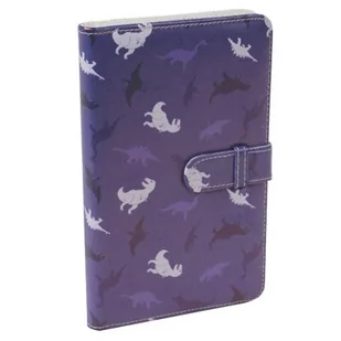 albumdino wykonany z tzw. skóry ekologicznej. mieści 108 zdjęć instax mini formatu 8,6 x 5,4 cm. posiada 18 karteka każda 6 kieszonek na zdjęcia. matowa okładka z ciekawym nadrukiem, całość zamykana na pasek.