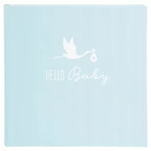 Album na zdjęcia wklejane niebieski 60 stron, Narodziny Dziecka Nowoczesny, tradycyjny album posiadający 60 stron /30 kart w kolorze białym. W środku znajdują się białe, grube bezkwasowe karty, poprzekładane pergaminem. Okładka wykonana z okleiny introligatorskiej w kolorze niebieskim. Na okładce biały bocian oraz napis "Hello Baby" Idealny na prezent dla świeżo upieczonych rodziców. Wymiary albumu: