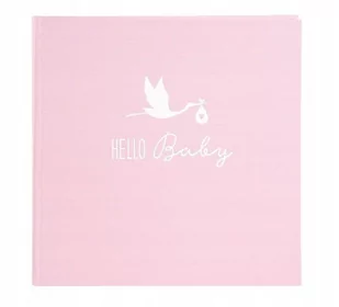 Album na zdjęcia wklejane różowy 60 stron, Narodziny Dziecka Nowoczesny, tradycyjny album posiadający 60 stron /30 kart w kolorze białym. W środku znajdują się białe, grube bezkwasowe karty, poprzekładane pergaminem. Okładka wykonana z okleiny introligatorskiej w kolorze różowym. Na okładce biały bocian oraz napis "Hello Baby" Idealny na prezent dla świeżo upieczonych rodziców. Wymiary albumu: