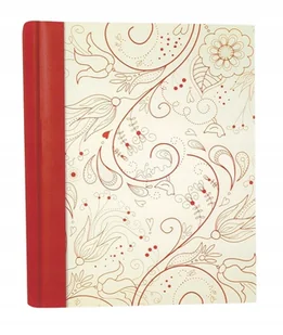 Album szyty, gwarantujący solidność i trwałość. Okładka beżowo-czerwona z motywami roślinnymi. Do wklejania zdjęć polecamy Państwu przylepce lub fotorożki.