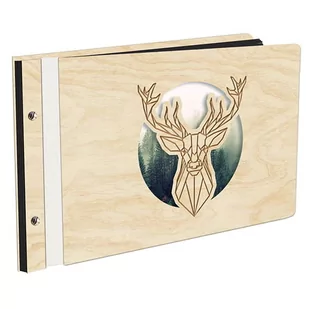 Album Na Zdjęcia Wyklejany Jeleń Szlachetny Z Pierwszą Stroną W Kolorze W Drewnianej Oprawie Z Czarnymi Kartami Z Grawerem