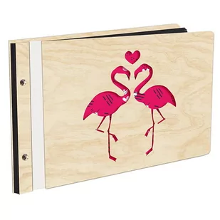 Album Na Zdjęcia Wyklejany Kochane Flamingi Z Pierwszą Stroną W Kolorze W Drewnianej Oprawie Z Czarnymi Kartami Z Grawerem